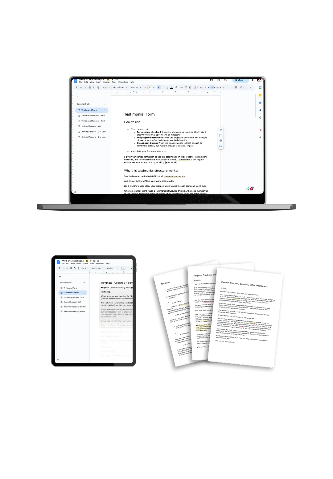 The Testimonial Request Emails: Pre-written templates that make it easy for clients to say "Yes."